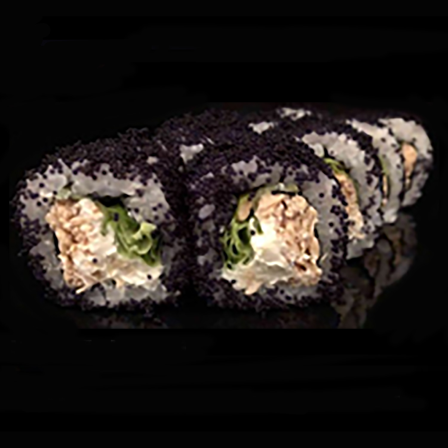 Baked salmon, cream cheese, salad leaves, flying fish roe. Allergens: (1,3,6,8,11,12,13)