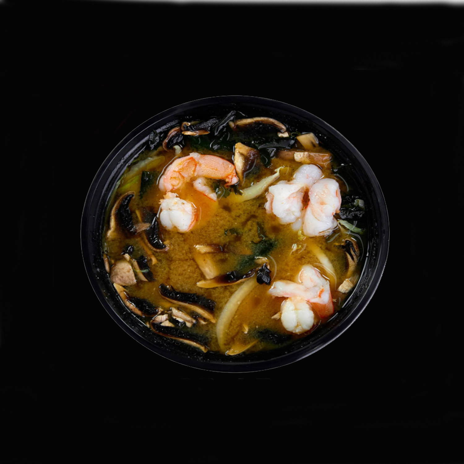 Tofu, dashi broth, miso paste, dry nori seaweed, shrimp