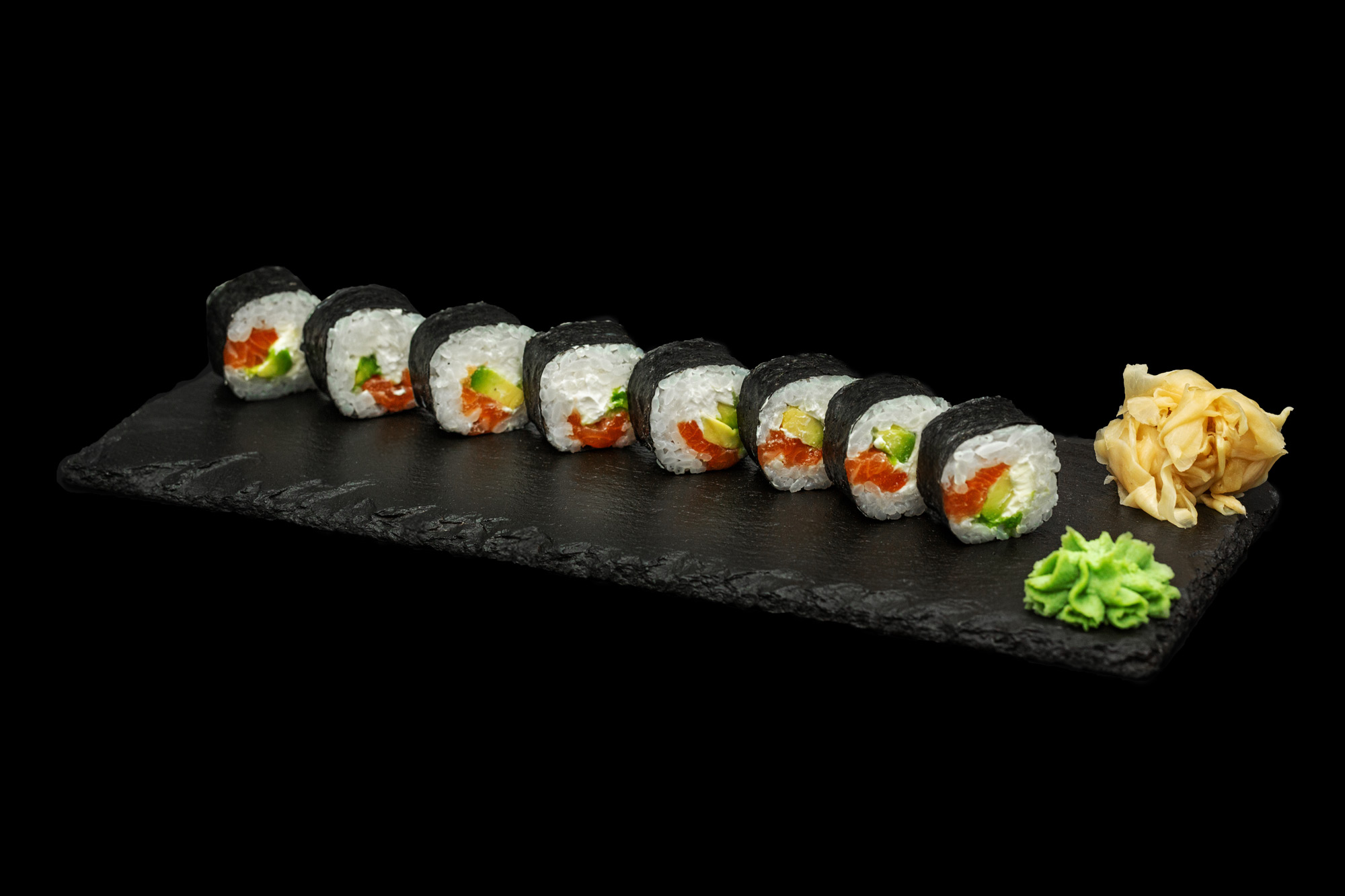 Salmon, avocado, cream cheese Roll quantity: 8 Allergens: (1,3,6,8,11,12,13)