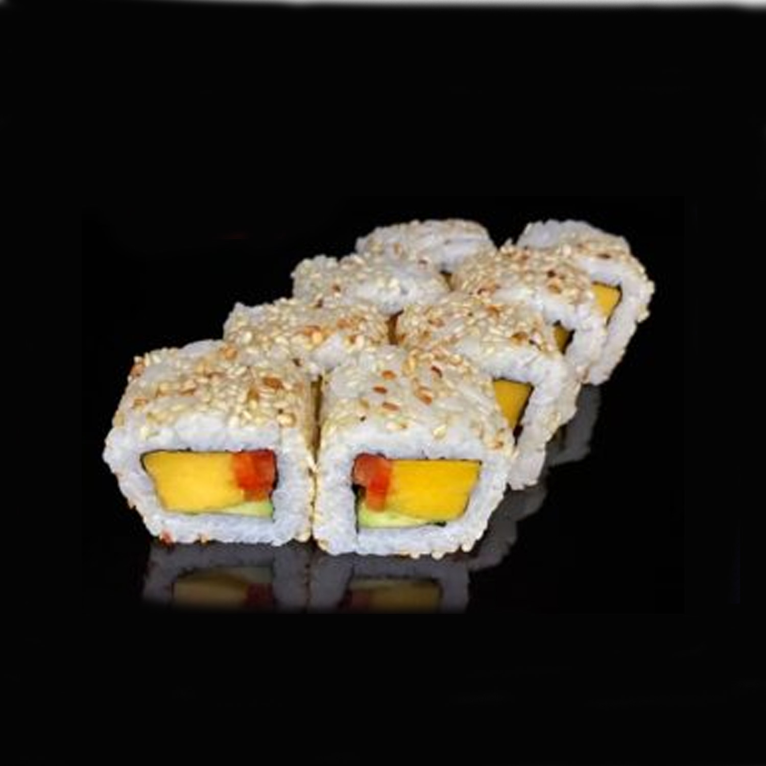 Mango, paprika, avocado, sesame seeds Roll quantity: 8 Allergens: (1,3,6,8,11,12,13)