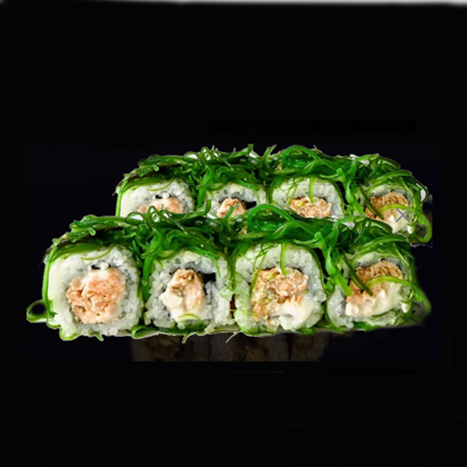 Wakame, fried salmon, cream cheese Roll quantity: 8 Allergens: (1,3,6,8,11,12,13)